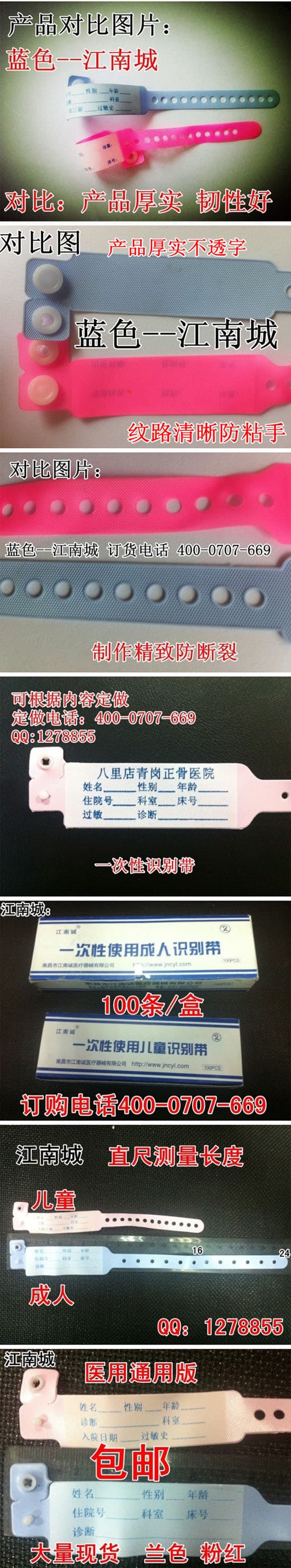 供應(yīng)各種款式一次性識別帶,身份識別帶、嬰兒識別帶、成人識別帶、母嬰識別帶、醫(yī)用識別帶,一次性手腕帶,有插卡式和書寫式,醫(yī)用分成人手腕帶和嬰兒手腕帶。廣泛用于集會、醫(yī)院、part、酒吧、賽事等。品種齊全,備貨充足,量大優(yōu)惠,歡迎你來訂購。
