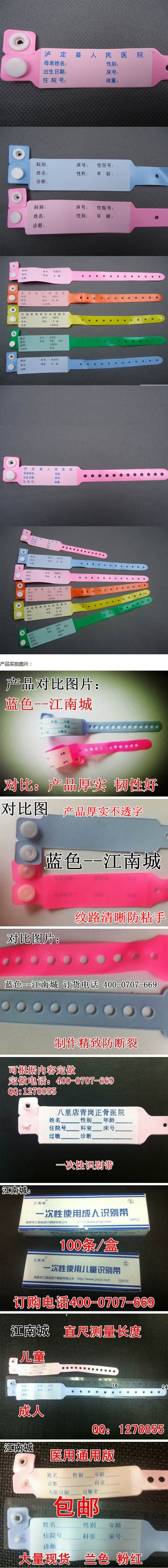 訂做logo品牌或加醫(yī)院名稱和單位名稱手腕帶,詳細說明和店主聯(lián)系!